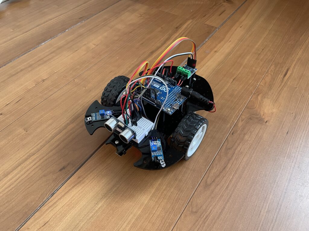 左右のセンサーや正面のセンサーが衝突を感知すると、即座にマイコンが判断し、モーターを制御します。